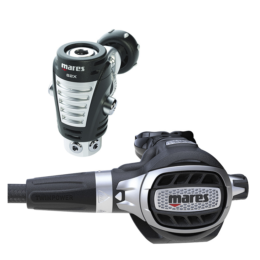 Mares七十年來頭一遭,生產了82X可旋轉式一級頭,內含AST阻水閥門,還有高壓出氣孔傾斜15度,配置管線更容易!全新設計Ultra ADJ二級頭,除擁有Twin Power System兩段式出氣調整及旋風輔助設計(VAD)外,再加上出氣微調調整鈕,一再顯示Mares為您的用心!擁有深潛200m、400m認證!